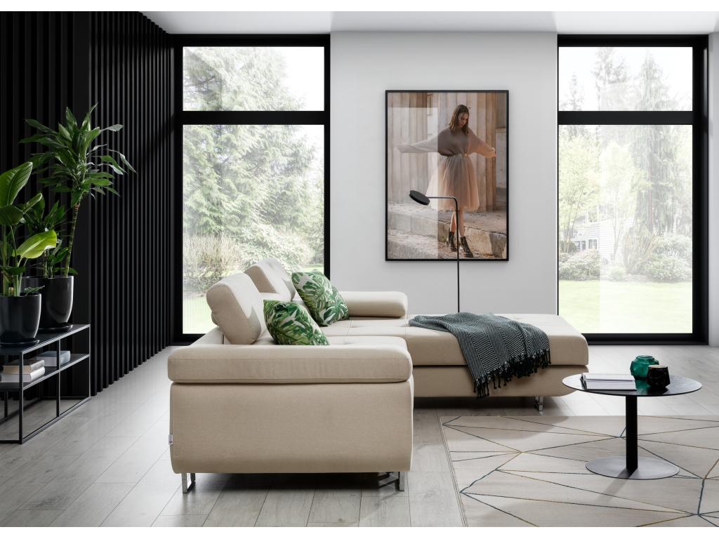 Chezlova 280cm GHFH30354 Right-hand corner sofa bed in green fabric and white faux leather with storage